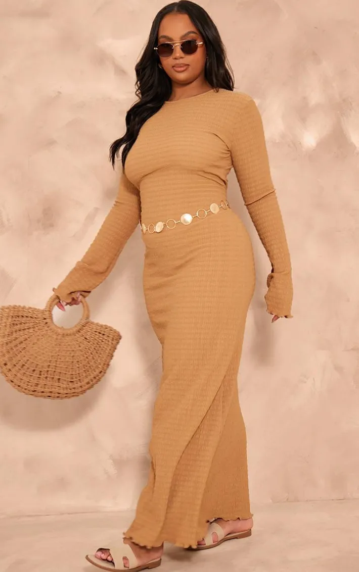 Say hello to your new season staple with this plus mocha crinkle textured lettuce hem long sleeve maxi dress. Brought to you in a mocha crinkle textured material with a lettuce hem, long sleeves and a maxi length, what more could you want? This maxi dress is here to banish any of your what to wear dilemmas. Style with sandals and accessories for a look that will have you being the topic of everyone’s conversation.