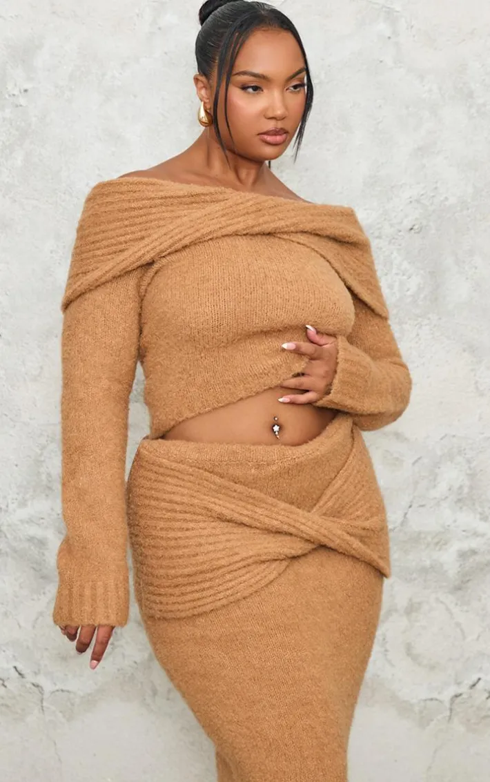 Bring all the cosy feels to your new season wardorbe with this plus mocha soft bobble knit bardot foldover top. Made from a mocha hue soft bobble knit material with a foldover bardot neckline and long sleeves, what’s not to love? Style this mocha top with the matching skirt, heels and gold accessories for a look that is sure to make heads turn.