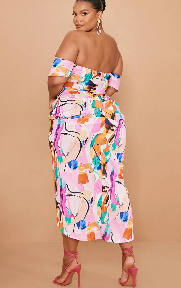 Get ready for that upcoming occasion with this dress. Featuring a multi hue material with a bardot neckline, ruched detailing and a figure-skimming fit. Style this with strappy heels and a shoulder bag to complete the look.