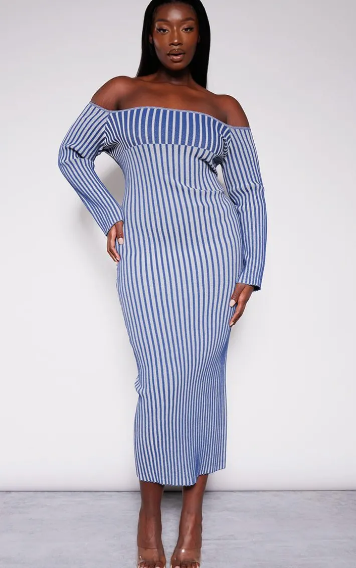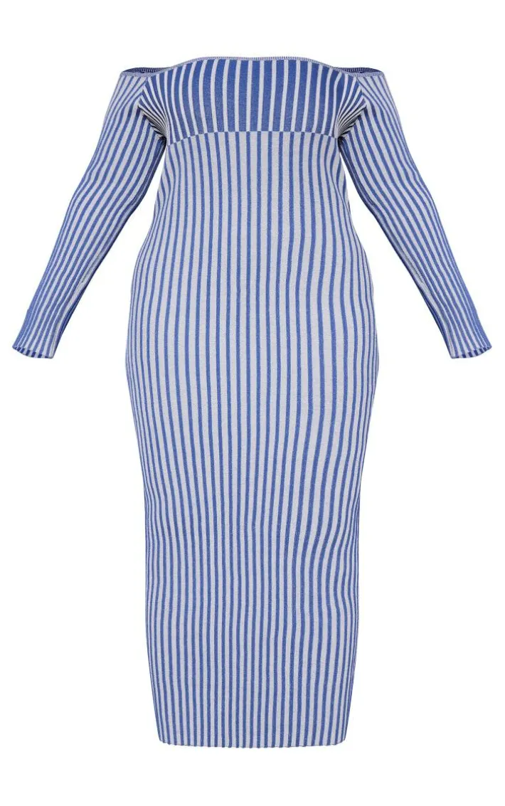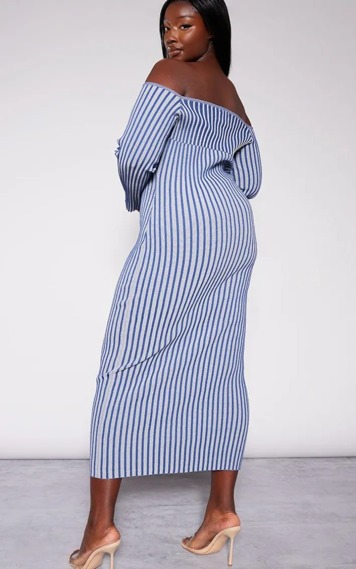 Get ready for the weekend with this plus navy two tone thick rib knit bardot maxi dress and be prepared to turn heads for all the right reasons. With a navy two tone thick rib knit material with a bardot neckline and a figure-flattering fit, how could you not be obsessed? This plus maxi dress is here to banish all your what-to-wear dilemmas and we know you won’t be able to resist the attention. Team with clear heels and gold accessories for a look that will nail the dress code.