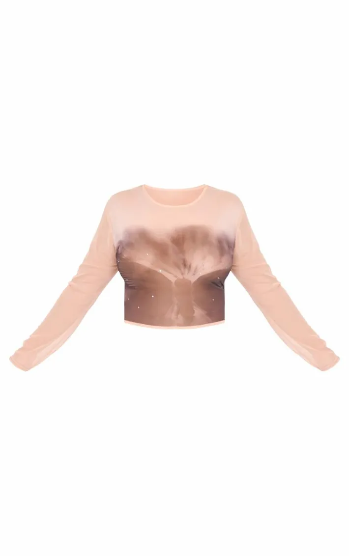 Own the night in this plus nude butterfly printed hot fix mesh top. Made from a nude mesh material with abutterfly print hot fix design, it’s perfect for solving those what to wear dilemmas. Why not pair this mesh top with your go-to pants and accessories for a look that will have all eyes on you?