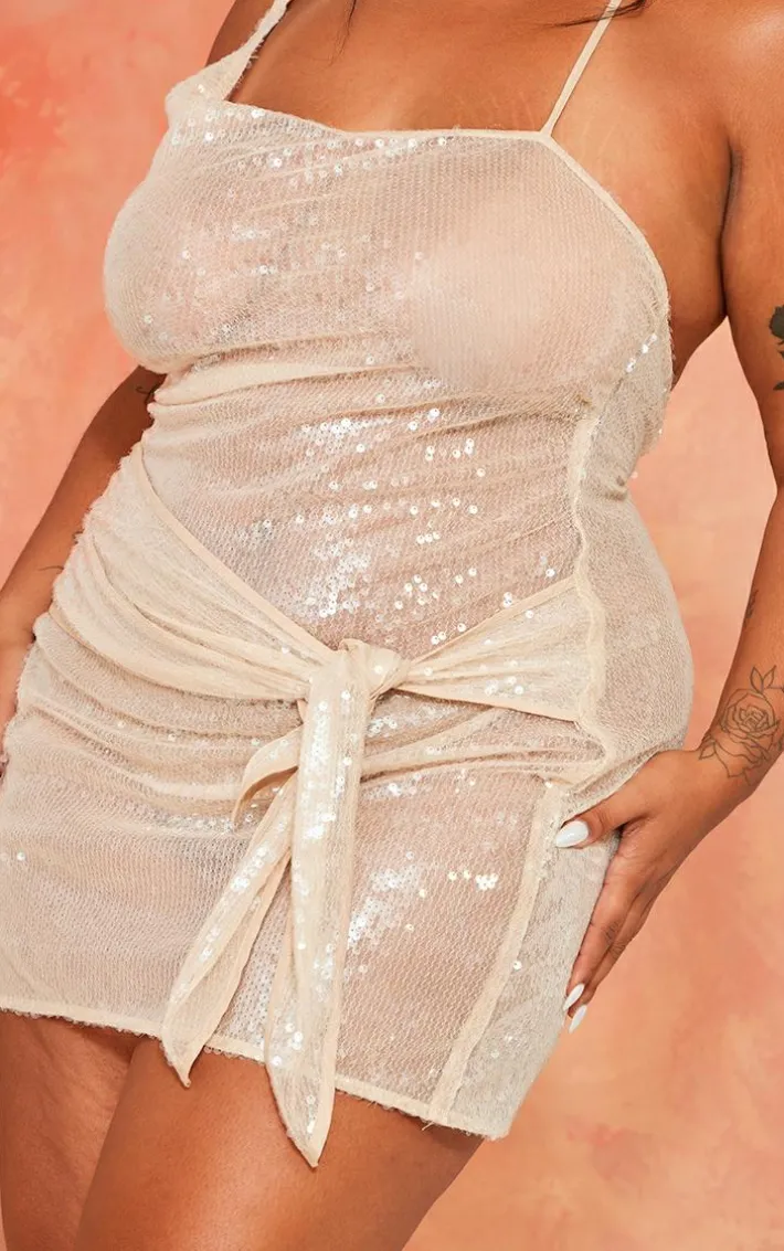 Become a showstopper this weekend with this plus nude sheer sequin wrap bodycon dress. Brought to you in a nude sheer sequin material with a wrap design and a figure-flattering fit, what’s not to love? This plus bodycon dress brings all the glam vibes you have been searching for and you are sure to feel like your best self. Pair with clear heels and gold accessories for a flawless finish.