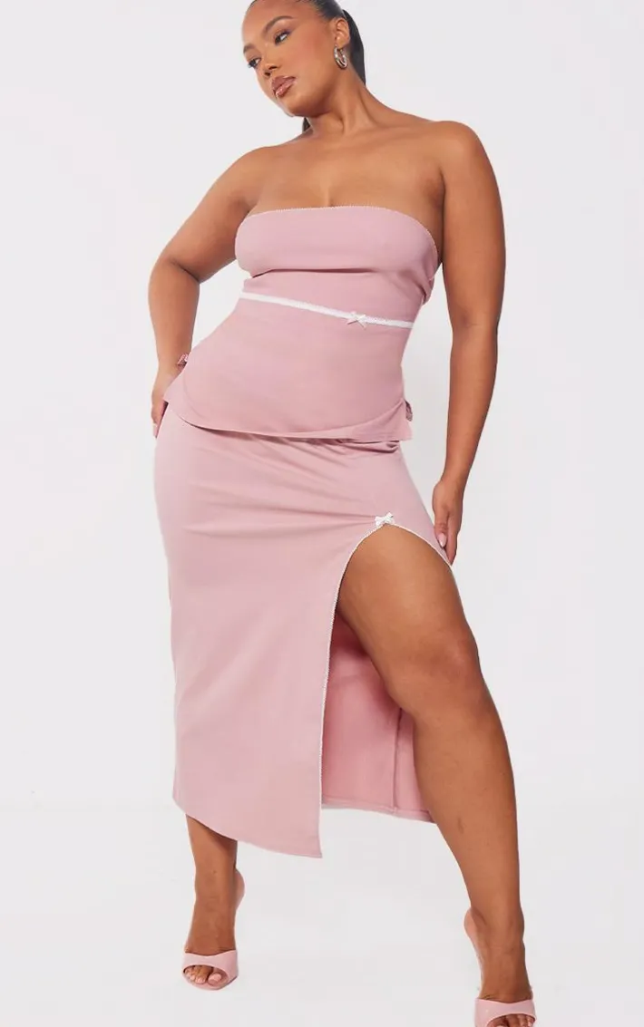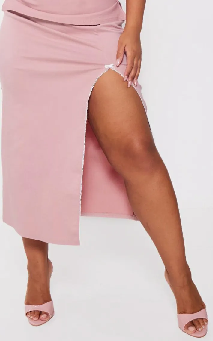 Get ready for your next date night in style with this plus nude split leg bow detail midaxi skirt, you’re sure to be earning all the compliments. This plus skirt features a nude hue material with a bow detail and a split leg design, how could you not be in love? Pair this midaxi skirt with the matching top, slip-on heels and hoop earrings for a combo we’re crushing on.