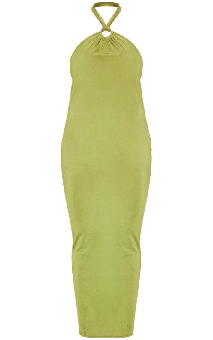Say hello to your new season staple with this plus olive acetate slinky ring detail midi dress. This midi dress is brought to you in an olive acetate slinky material with ring detailing and a midi length, what’s not to love about this ? With it’s figure-hugging fit this dress is sure to have all eyes on you. Style with clear high heels and accessories for a look like no other.