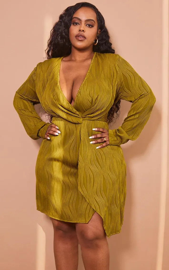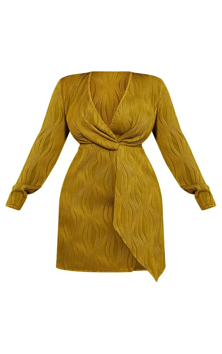 Amp up your weekend wardrobe with this dress. Featuring an olive plisse material with a front wrap design and a figure-skimming fit, how could you say no? Effortlessly style with clear mules, a clutch bag and simple accessories to earn some serious style points.