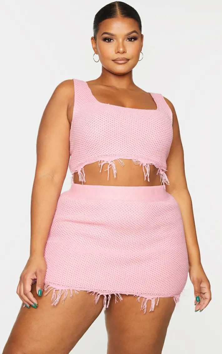 Add a pop of pink to your new season collection with this skirt. Featuring a pink knit material and a raw hem design. Team with the matching crop top and your go-to accessories for a combo we’re crushing on right now.
