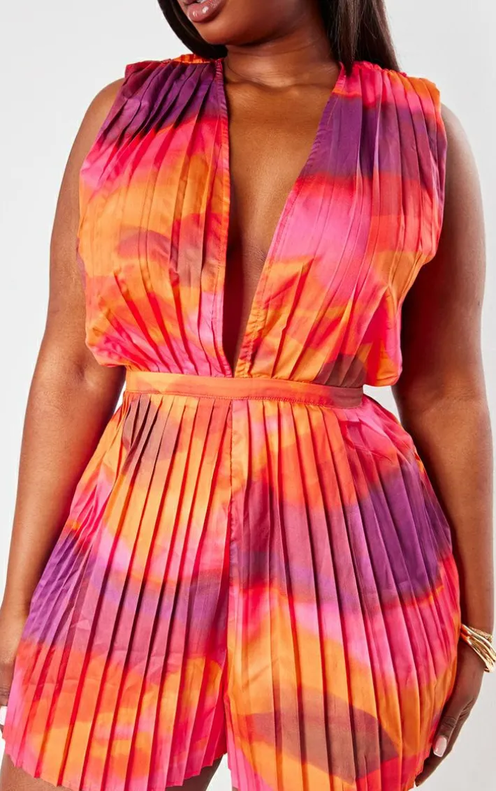 Take on your weekend the right way with this statement plus pink wave print pleated shoulder pad plunge romper. Made from a pink wave print material with a pleated design and a plunge neckline, this is everything we’re loving and more. With It’s figure-hugging fit this romper is sure to hug you in all the right places. To complete the look style this seamlessly with high heels and accessories for a look that will secure you all the likes.