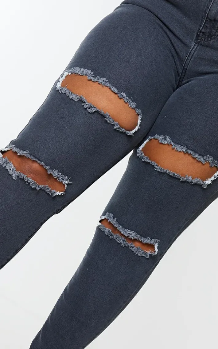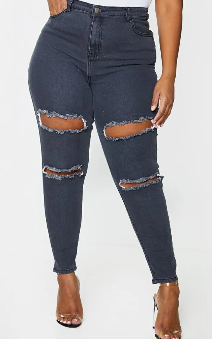 Jeans are essential for any doll and we’re loving this style. Featuring a washed black denim with double rip detailing and a high waisted fit, team these with a tee and barely there heels to complete the look.
