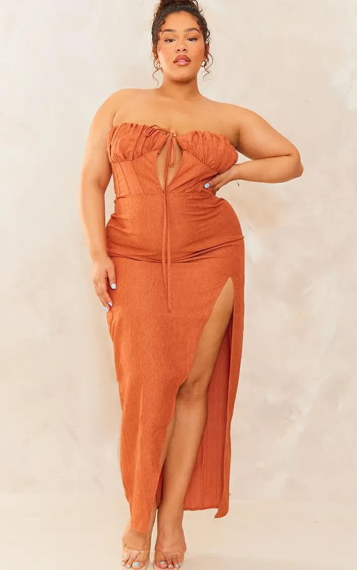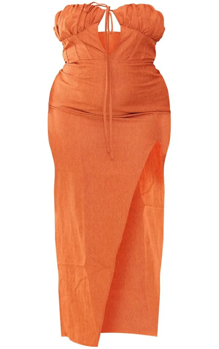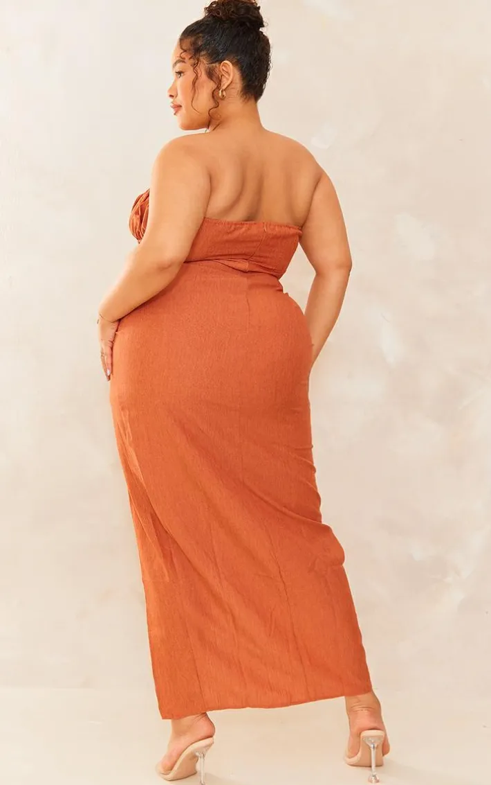 Add some of this season’s must-have hue to your wardrobe with this plus rust side split halterneck midi dress, you’re sure to be showing off your chic side. This dress features a rust material with a side split design and a halterneck style that will have you nailing major trends. Pair this plus midi dress with your fave heels and simple accessories for a look everyone will want.