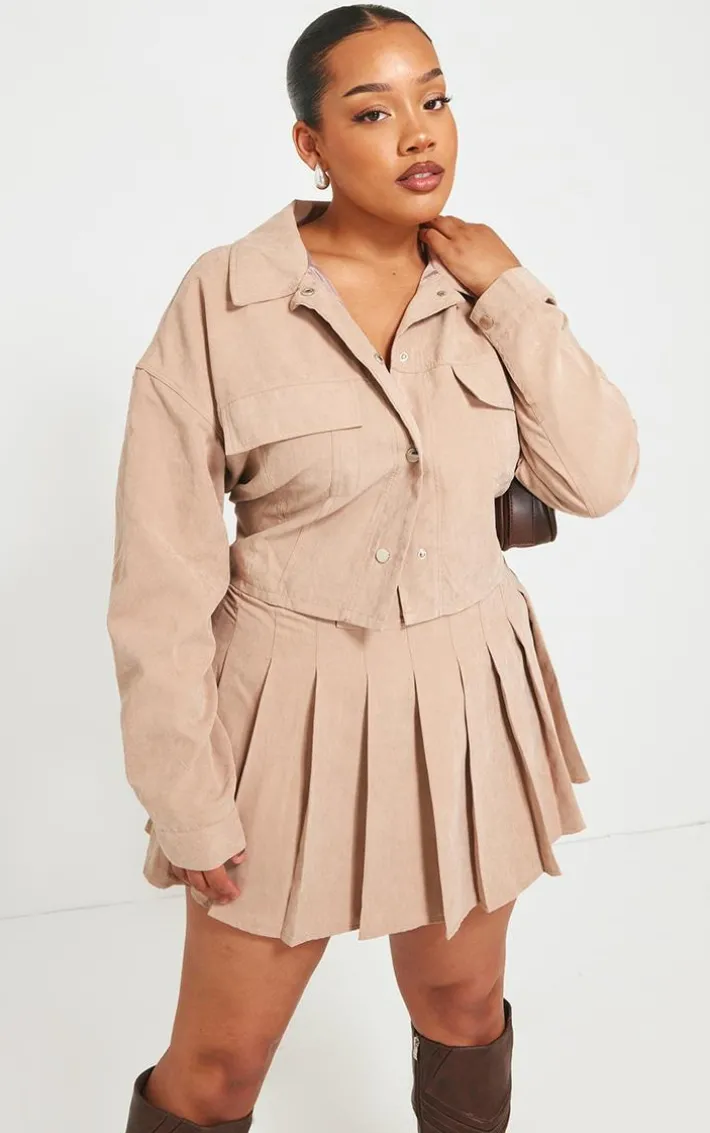 Take your everyday look to the next level with this plus sand pleated belt loop detail mini skirt perfect for your everyday styling and beyond. Brought to you in a sand material with a pleated belt loop detail and a mini length, we simply can’tget enough. With It’s versatile style this unreal plus skirt is sure to be your new go-to. Style with a pair of heels and accessories of your choice for a look that we can’tget enough of.
