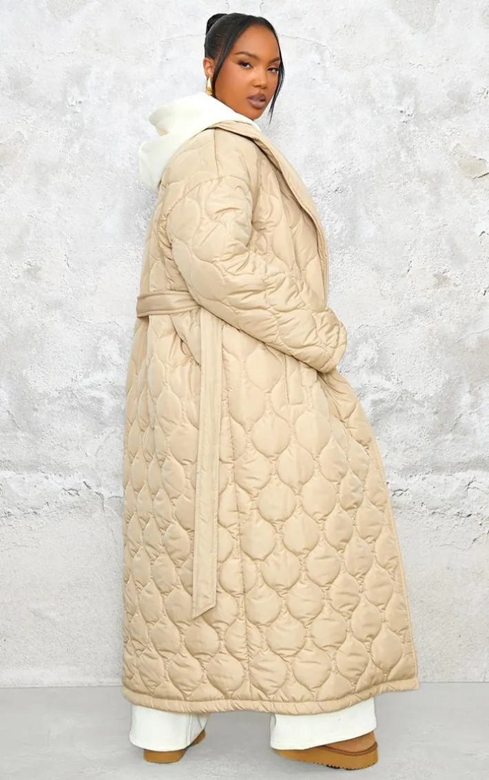 Refresh your coat collection with this plus stone maxi belted quilted coat. Brought to you in an unreal stone color, maxi length and quilted material, it will solve all of your what to wear dilemmas. The belted detail will add an off-duty vibe to your look. Layer over your outfit of the day and just add a shoulder bag for the perfect finishing touch.