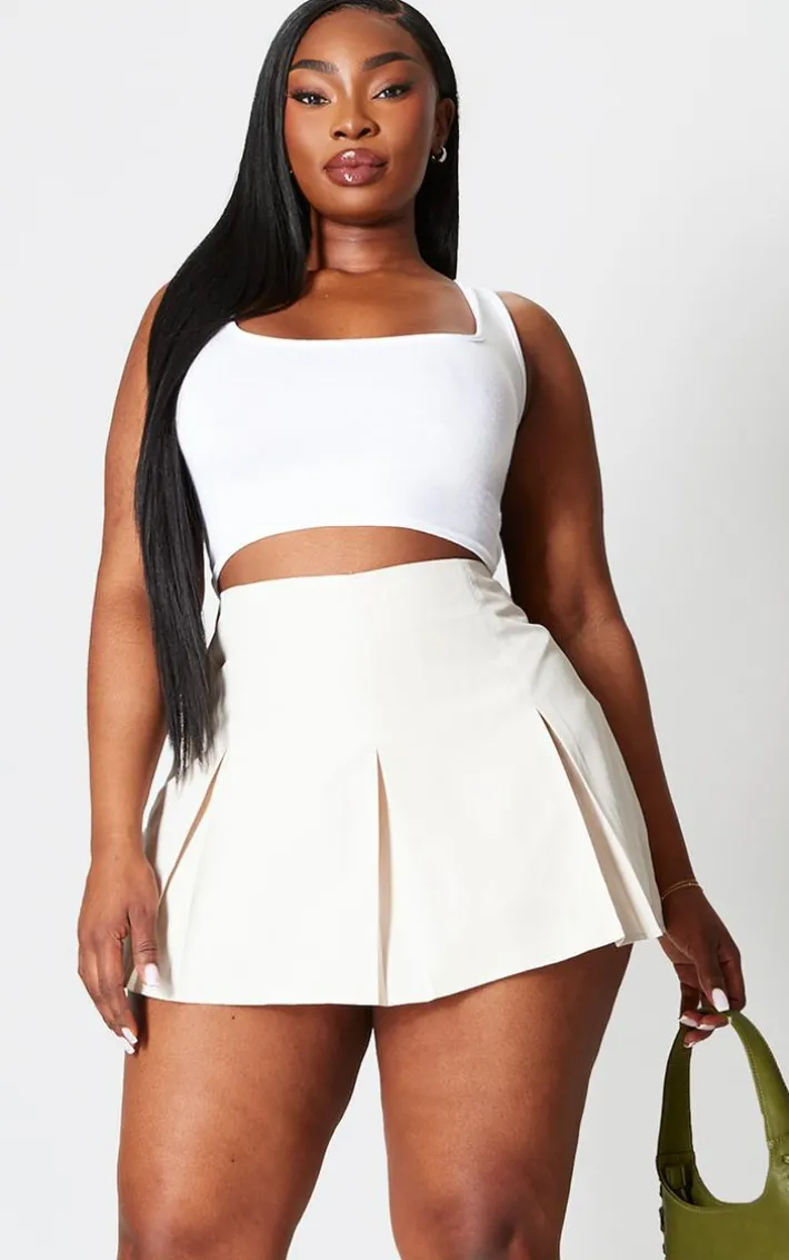 Amp up your style game this season with this plus stone tailored woven box pleat skater skort. Brought to you in a stone woven material with a tailored woven box pleat design, how can you say no? Style this skater skort with a white crop top, heels and mini bag for a combo we’re crushing on.