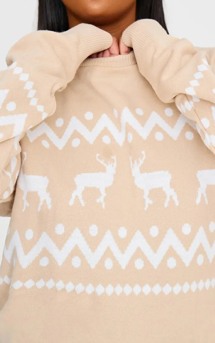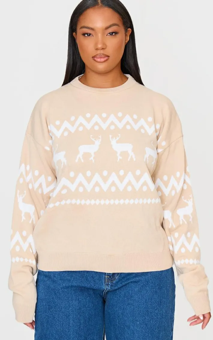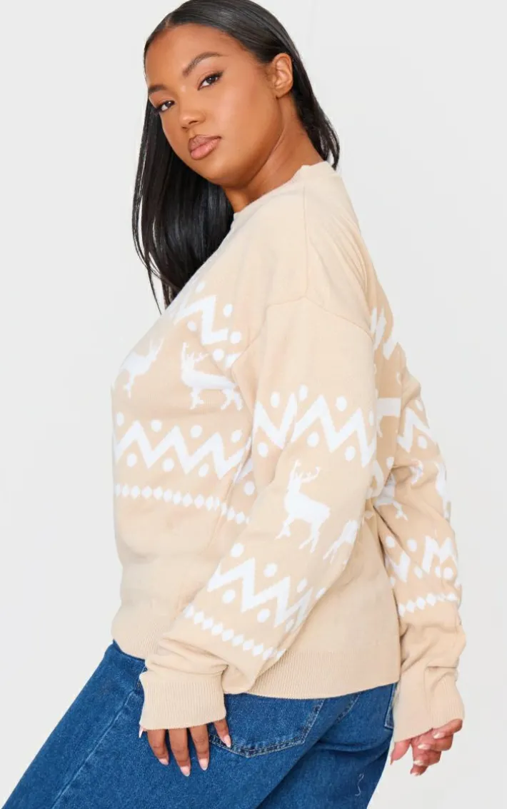 We’re all about neutral hues this season and this plus stone oversized fairisle panel Christmas sweater will have you feeling all kinds of festive. It is made using a stone hue material with a fairisle panel design and a comfy fit, what more could you want? Just adda pair of jeans and your fave sneakers for the perfect chilled day fit.