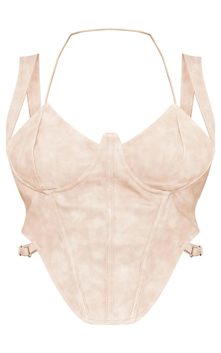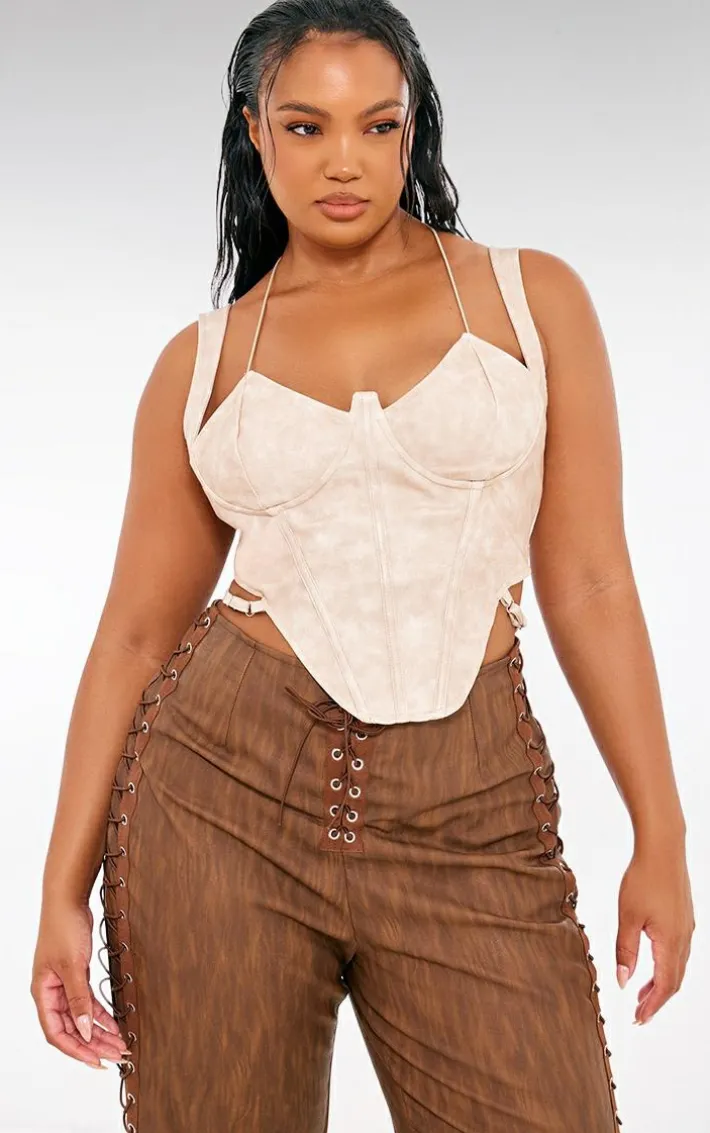 Steal all the stares in this plus stone washed faux leather cross halterneck dip hem corset. Brought to you in a stone washed hue faux leather material with a cross halterneck design and dip hem detail, this corset is at the top of our wish list. How can you resist? Style with brown lace up pants, a pair of brown heels and simple accessories for a look that won’t go unnoticed.