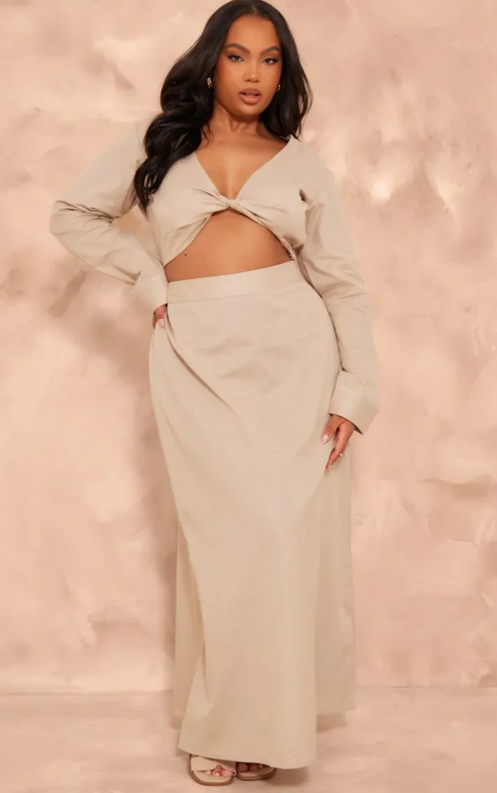Switch up your new season style game with this unreal plus taupe linen look twist front cropped shirt, you won’t be able to resist. This plus shirt is brought to you in a taupe linen look material with a twist front design and a cropped length, what’s not to love? Pair this linen look shirt with the matching skirt and your fave accessories for a look that will get everyone talking.