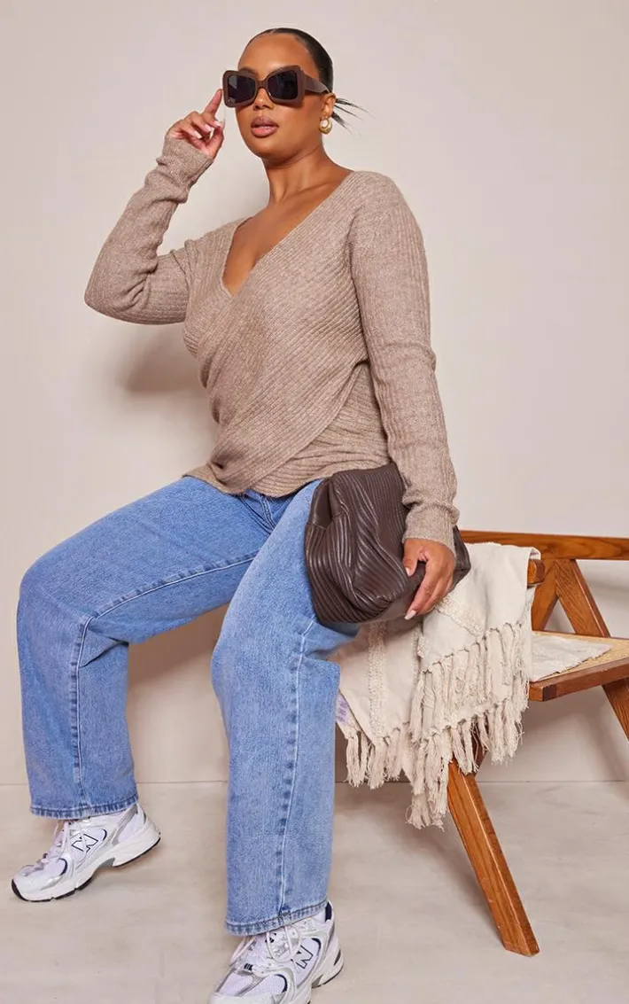 Take your everyday look to a whole new level with this plus taupe soft knit wrap sweater, we’re seriously in love. Made using a taupe soft knit material with a wrap over design and a relaxed fit, this sweater just went straight to the top of your hit list. Style with some blue jeans, chunky kicks and your fave accessories for an instant chic finish.