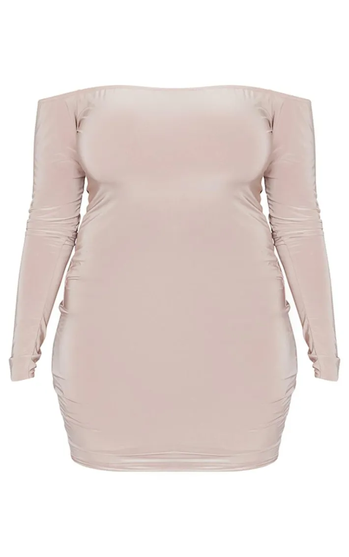 Take on your weekend the right way with this statement plus taupe soft touch bardot mini dress. Made from a taupe soft touch material with a bardot design, this is everything we’re loving and more. With it’s figure-hugging fit this dreamy mini dress is sure to hug you in all the right places. To complete the look style this seamlessly with your fave accessories for a look that will secure you all the likes.