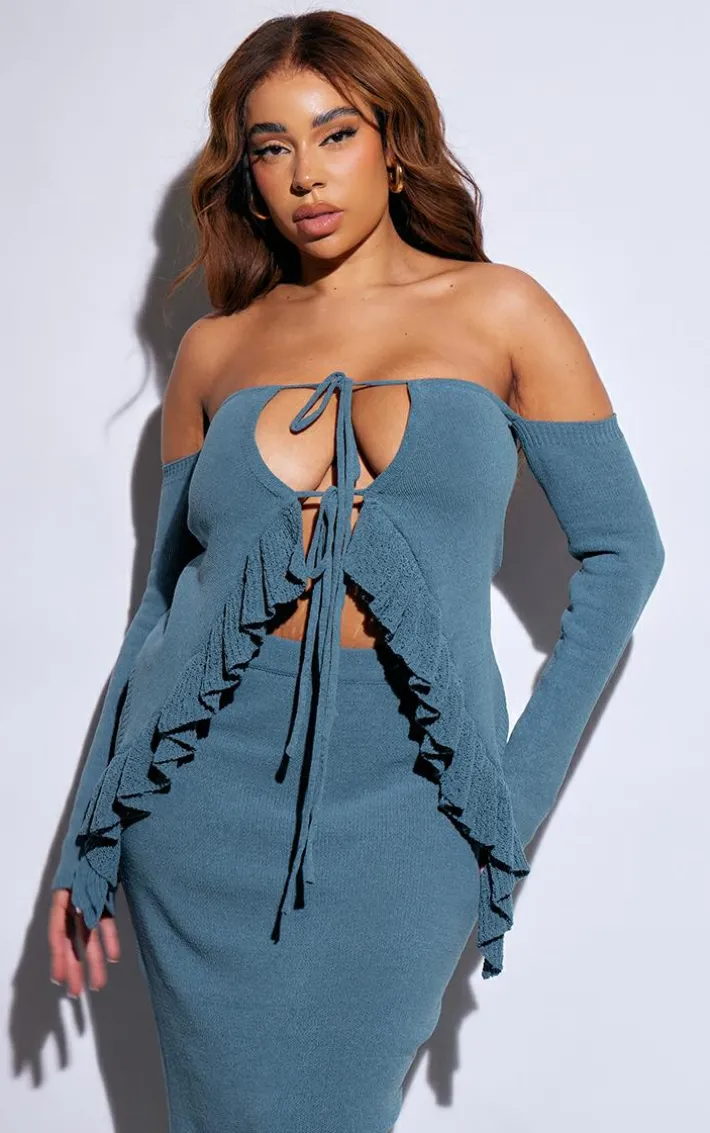 Get ready to have all eyes on you with this plus teal frill sleeve tie front knit top. Brought to you in a teal knit material with a frill sleeve, what’snot to love? With it’s tie front, you’ll sure to earn all the likes with this dreamy piece. Finish off the look by pairing this with the matching skirt and your fave accessories. It’s a yes from us.