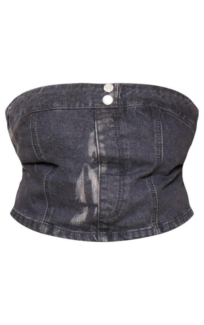 When the weekend calls for a little drama this plus washed black bandeau button detail denim crop top will have you at the center of attention. It is made using ablack washed denim material with a button detail and a cropped length, what more could you want ? Style this with denim shorts, sneakers and statement accessories to elevate the look further.