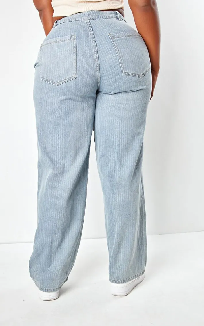 Upgrade your denim collection with these plus washed blue pinstripe denim boyfriend straight leg jeans. Brought to you in a washed blue pinstripe denim material with a boyfriend style and a straight leg fit, how can you resist? Style these plus jeans with a top and sneakers for an effortless everyday look that won’t go unnoticed.