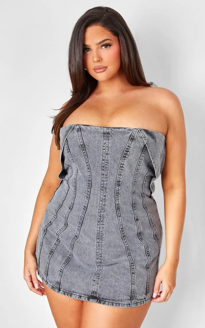 Make a statement this season in this plus washed grey seam fold over bust detail denim dress. Brought to you in a washed grey denim material with a seam detail and fold over bust design, this dress is a must-have. Style with red heels and simple accessories for a look that will have heads turning for all the right reasons.