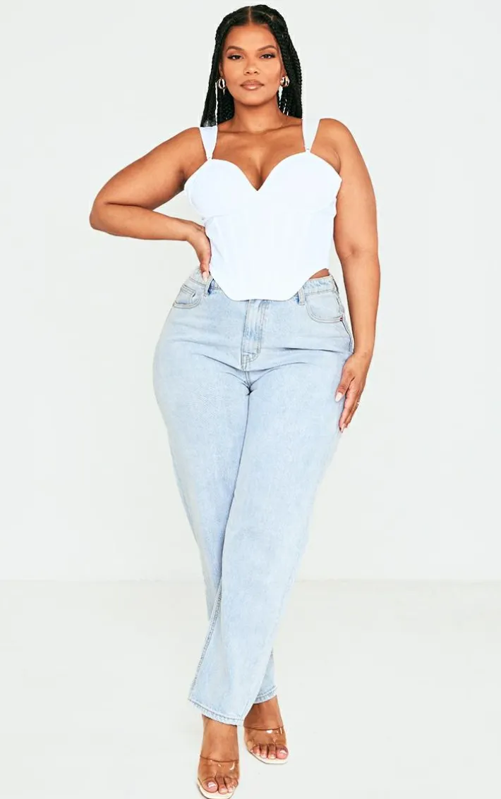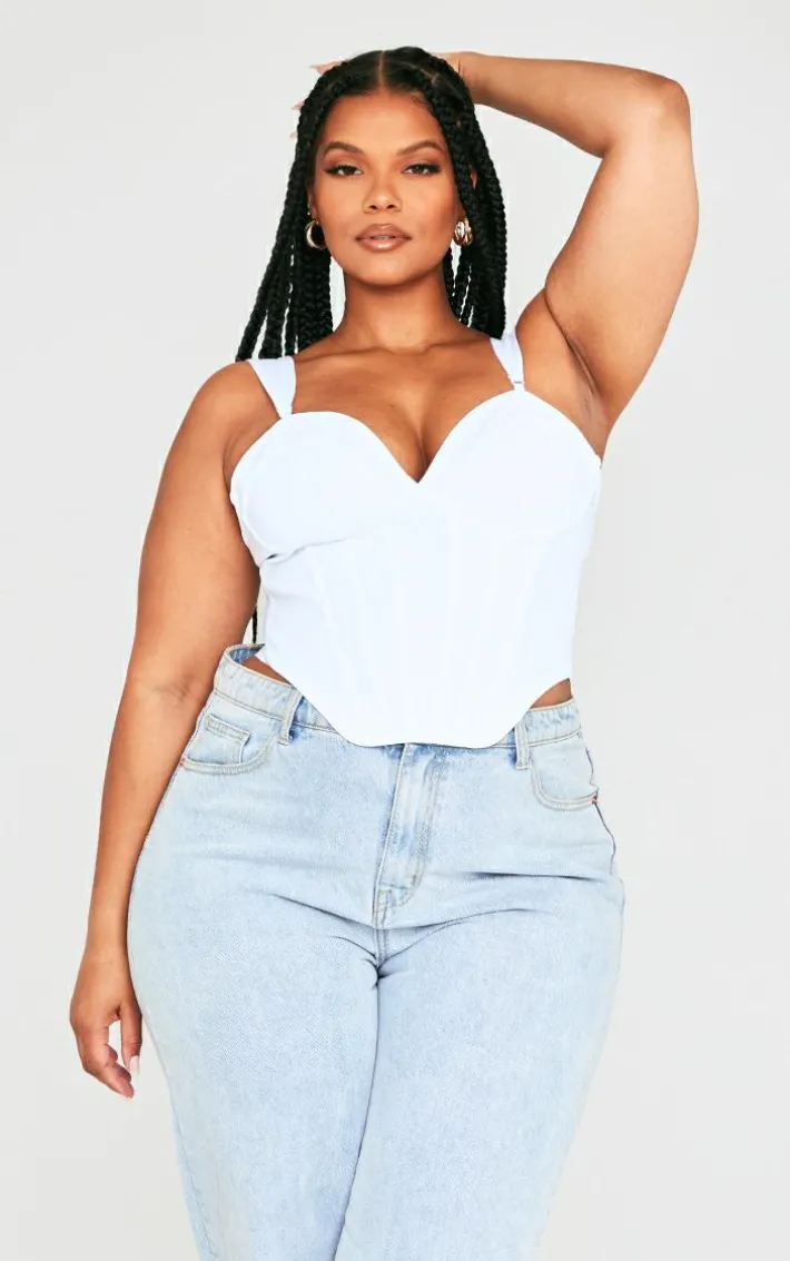 Nail that ‘jeans and a nice top’ dress code with this plus white bandage dip hem bust cup corset. Its white bandage material injects some dreamy vibes to your look and its dip hem with bust cup detail gives you a glam touch. This corset is the ultimate styling piece for any weekend plans and will pair with all your existing pieces. For a look we’re obsessed with, add denim jeans, clear heels and a statement bag.