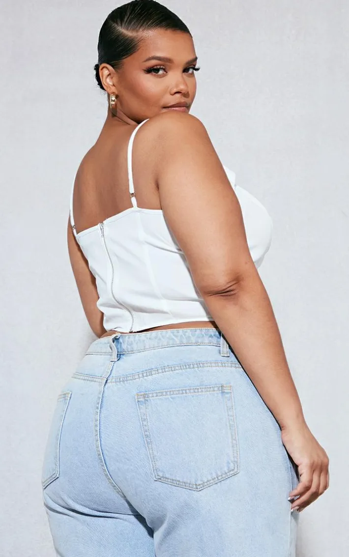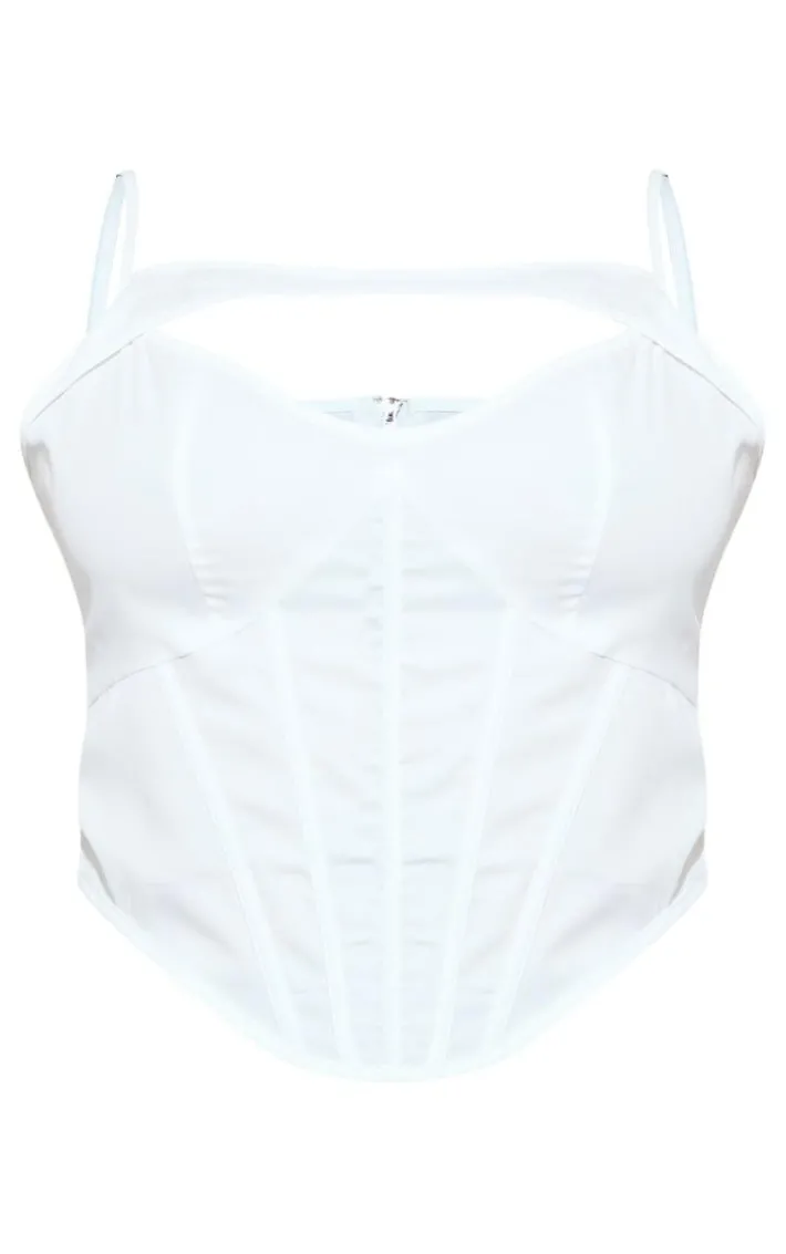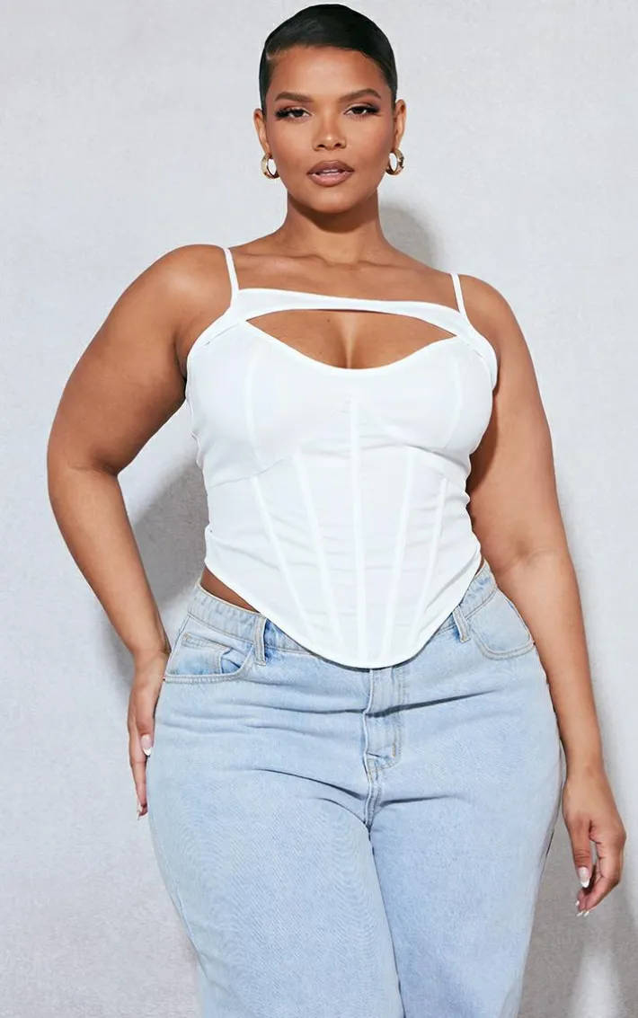 Nail the ‘nice jeans and top’ trend with this plus white cut out boned corset. Brought to you in a white material with a cut-out design and boned detailing, how could you say no? A corset is an essential piece to any s wardrobe and this one is calling your name. Pair effortlessly with your clear high heels and accessories for a look that will have all heads turn.