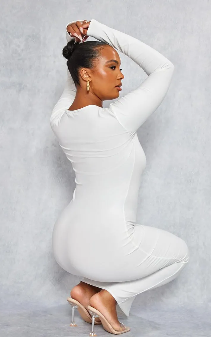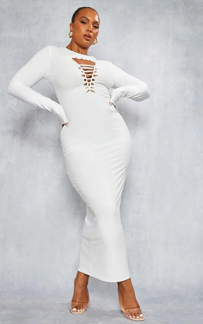 Get your glam on with this plus white laser cut long sleeve maxi dress. This maxi dress is brought to you in a white material with a cut-out front and long sleeves, what’s not to love? With it’s figure-hugging fit this maxi dress will have you looking effortlessly on-point this season. To complete the look style this dress with high heels and gold accessories for a look that we can’t stop loving.