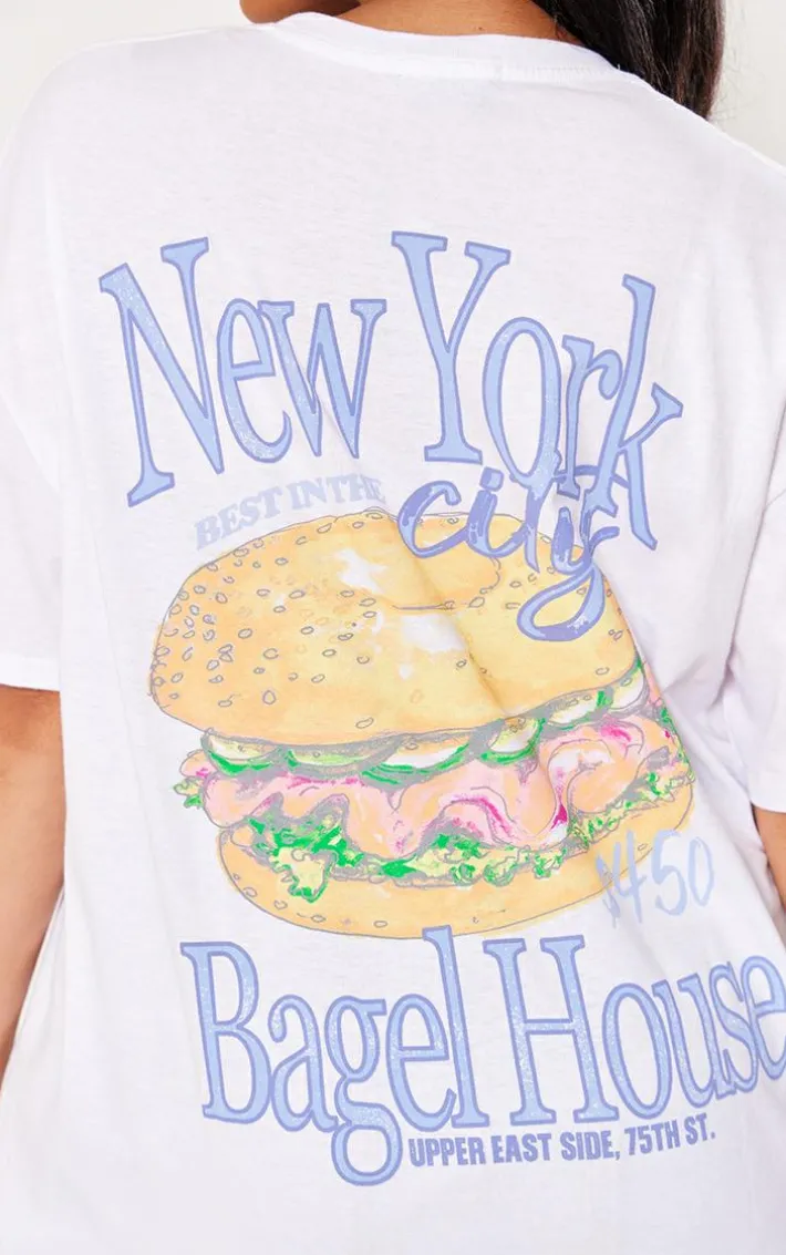 Amp up your off-duty wardrobe with this plus white New York bagel oversized Graphic t-shirt. Brought to you in a white hue material with a ‘New York Bagel’ Graphic print design and an oversized fit, what’s not to love? Style this white t-shirt with denim shorts and sneakers for a look you will be reaching for again and again.