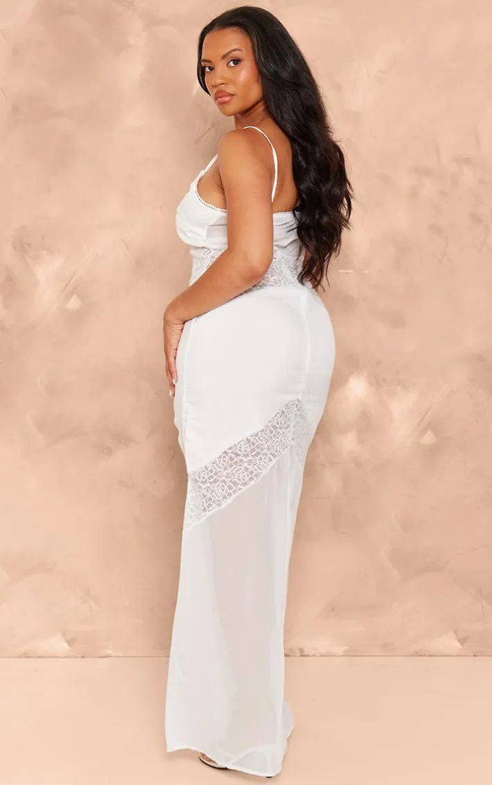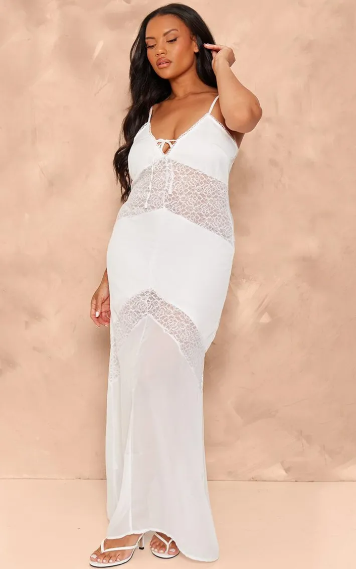 Found some last-minute weekend plans and need an unreal ‘fit? Then we have you covered with this styling staple, a plus white strappy lace panel maxi dress. With a white material with a strappy design and a lace panel detail, we’re obsessed. Work your styling techniques and add high heels with your dreamy accessories for a weekend-worthy finish that will gain all the likes.