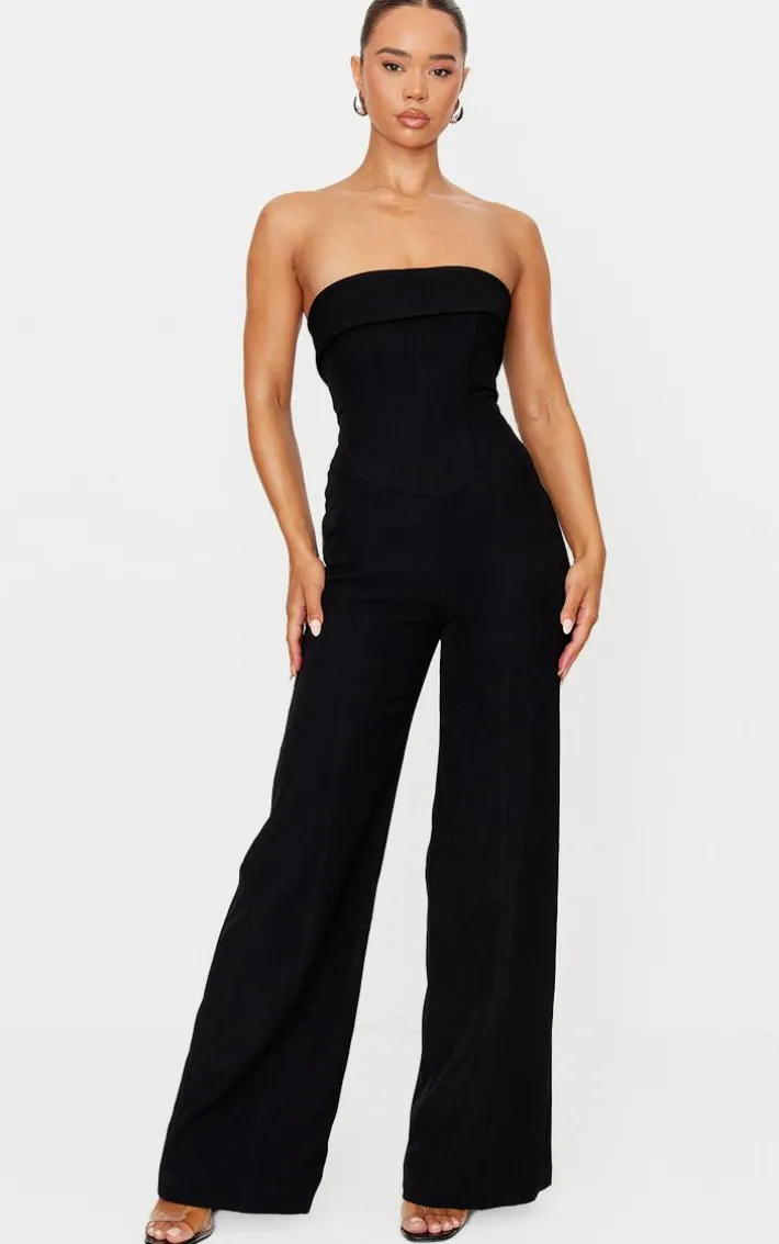 Whatever your weekend plans, this premium black woven bandeau corset straight leg jumpsuit is a versatile option. Brought to you in a black hue woven material with a bandeau neckline, corset detail and straight leg design, how can you resist? Turn heads in this jumpsuit paired with high heels and gold accessories. It’s a yes from us.