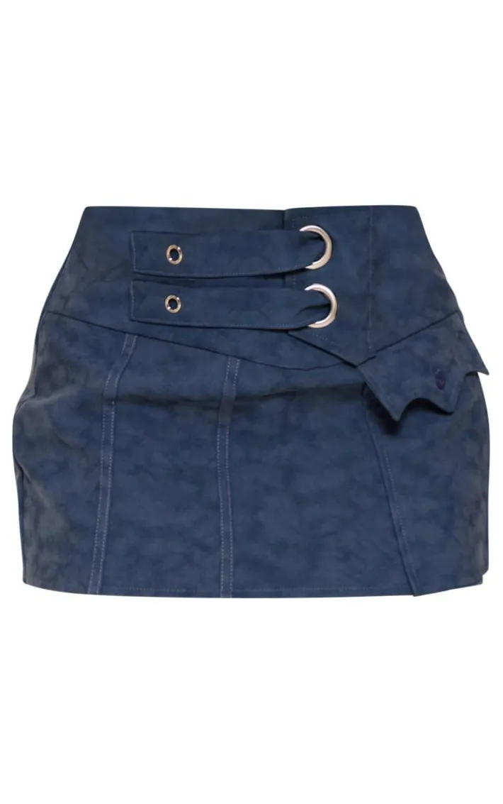 Say goodbye to all your what-to-wear dilemmas with this blue washed faux leather strap detail wrap over micro mini skirt. Made from a blue washed faux leather material with strap detail and a wrap over design, what’s not to love? This micro mini skirt is the perfect addition to your weekend wardrobe and is sure to gain you all the compliments. Style seamlessly with the matching top, metallic heeled mules and silver accessories for a flawless finish.