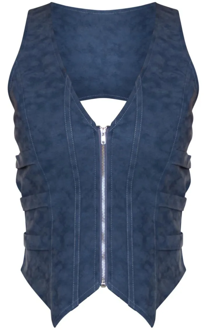 Make room in your wardrobe for this blue washed faux leather zip front strap detail corset, you’re sure to have all eyes on you. With a blue washed faux leather material. a zip front design and a strap detail, this corset just went straight to the top of your hit list. Style this faux leather corset with the matching skirt, slip-on heels and a shoulder bag for a dreamy date night look.