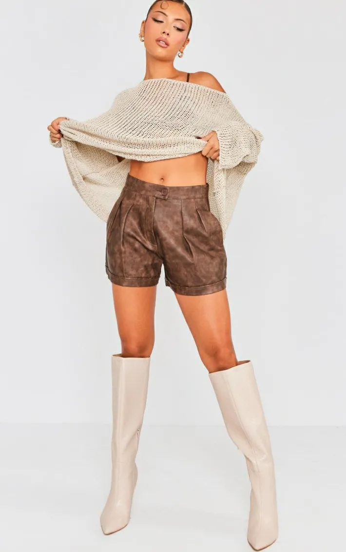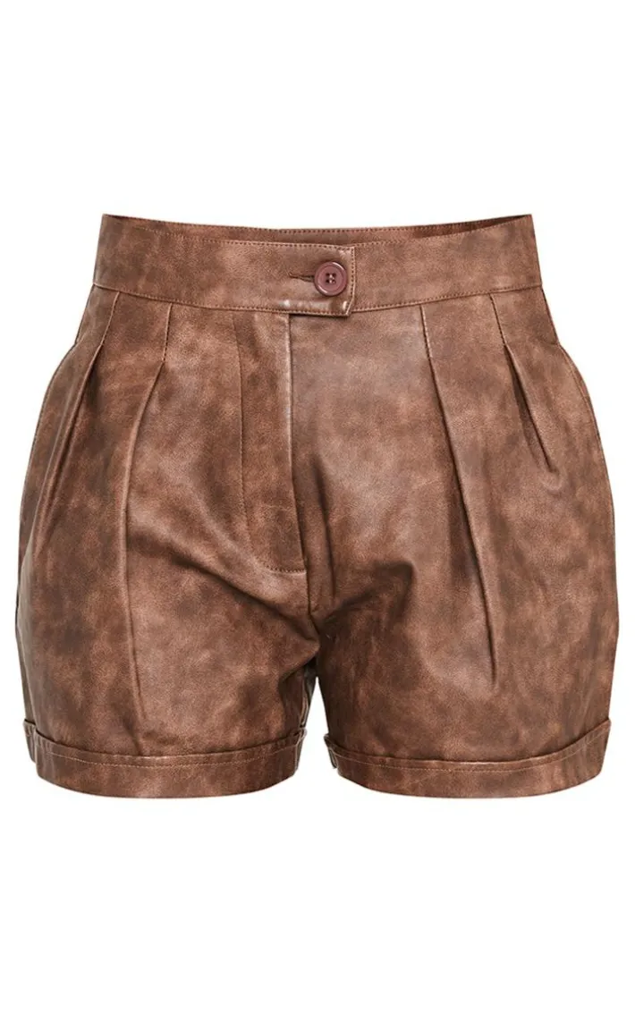 Switch up your new season style game with these brown washed faux leather pleat detail shorts, we just can’t get enough. Brought to you in a brown washed faux leather material with pleat detailing and a relaxed fit, you’ll be earning all the likes in these shorts. Pair them with an oversized top, knee high heeled boots and a clutch bag for a weekend look we’re loving.