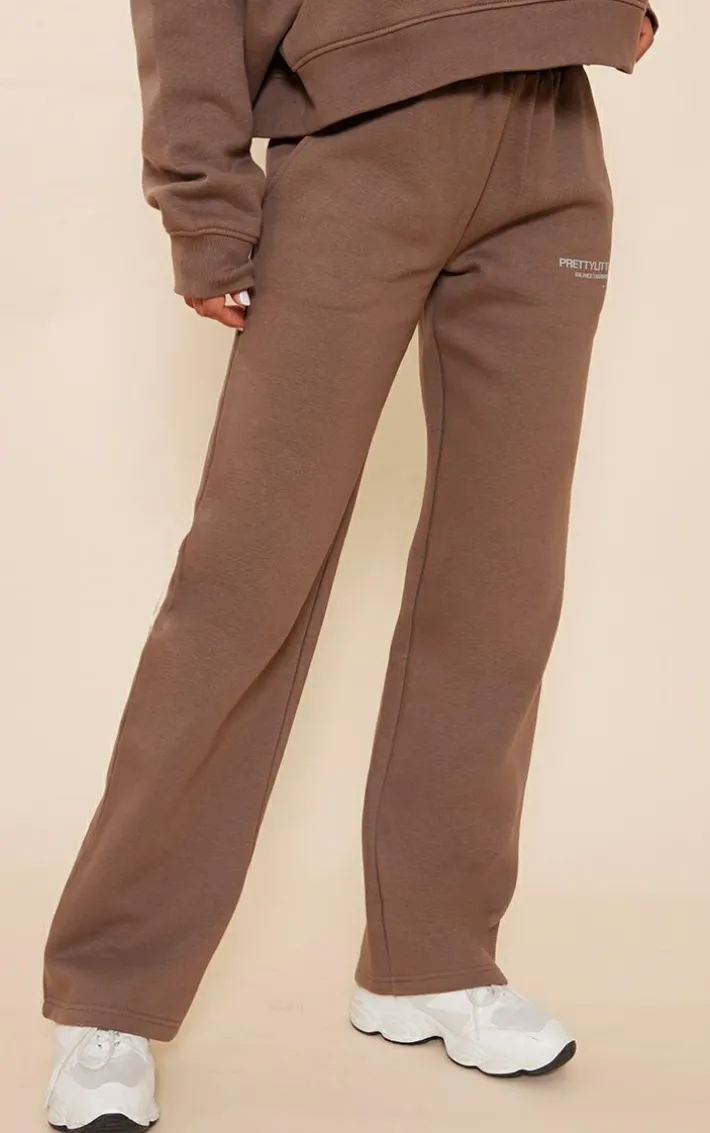 Add some of this season’s must-have hue to your wardrobe with these premium coffee printed straight leg sweatpants, they’re sure to bring all the comfy but chic vibes to your off-duty look. These sweatpants feature a coffee hue material with a ‘PrettyLittleThing’ printed design and a straight leg fit, we’re in love. Team with the matching top, chunky sneakers and your fave accessories for a fresh finish.