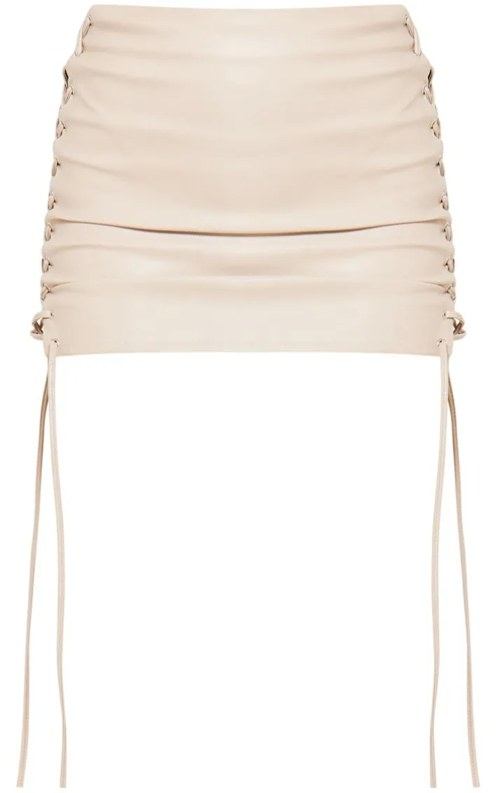 Make heads turn for all the right reasons in this premium cream faux leather lace front micro mini skirt. Brought to you in a cream hue faux leather material with a lace front design and a micro mini fit, how can you resist? We are loving this faux leather skirt styled with the matching top, gold accessories and statement heeled boots for a simple yet chic neutral look that will gain all the compliments.