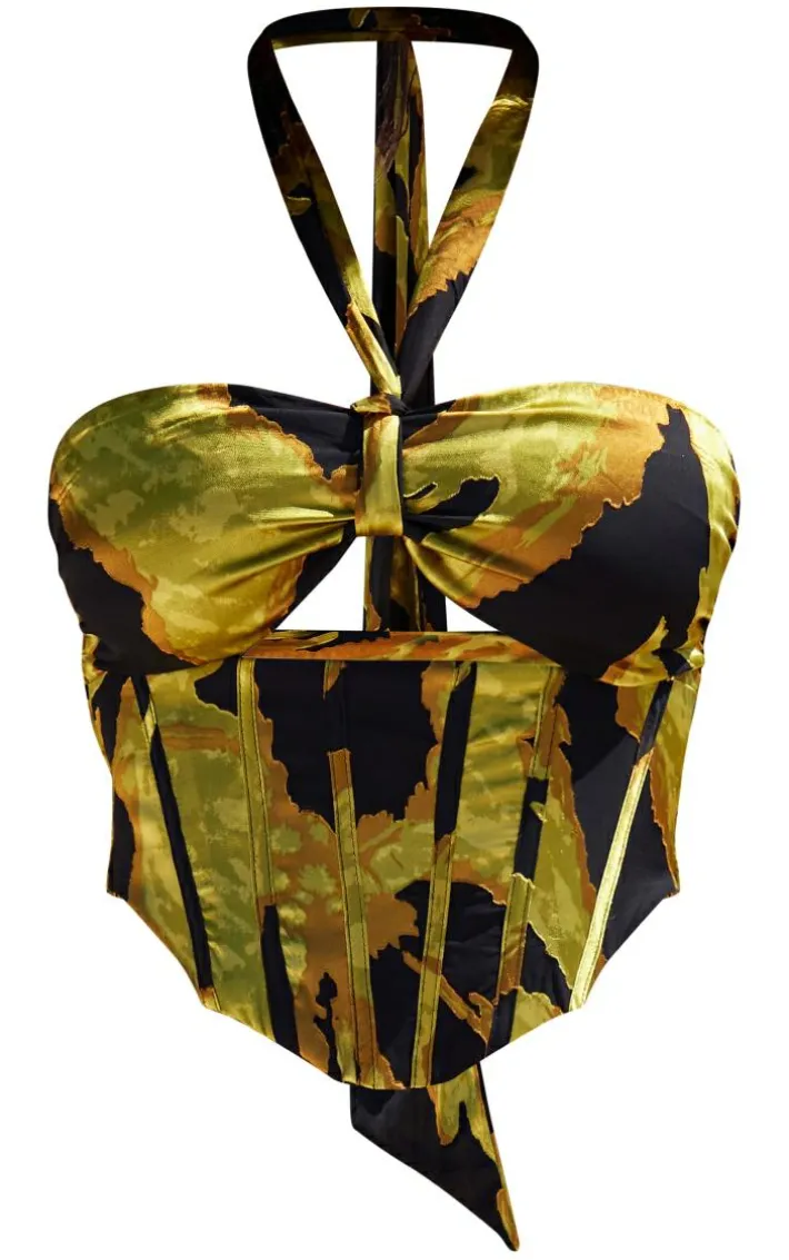 We’re obsessed with this premium multi burnout chiffon halterneck corset for your weekend outfit. Its multi burnout chiffon material gives you that chic touch and its halter neckline brings those glam vibes you have been searching for. This corset is the perfect addition to your wardrobe and it is sure to nail this weekend’s dress code. Style this corset top with the matching mini skirt, clear heels, gold accessories for a dreamy look that will get everyone talking.