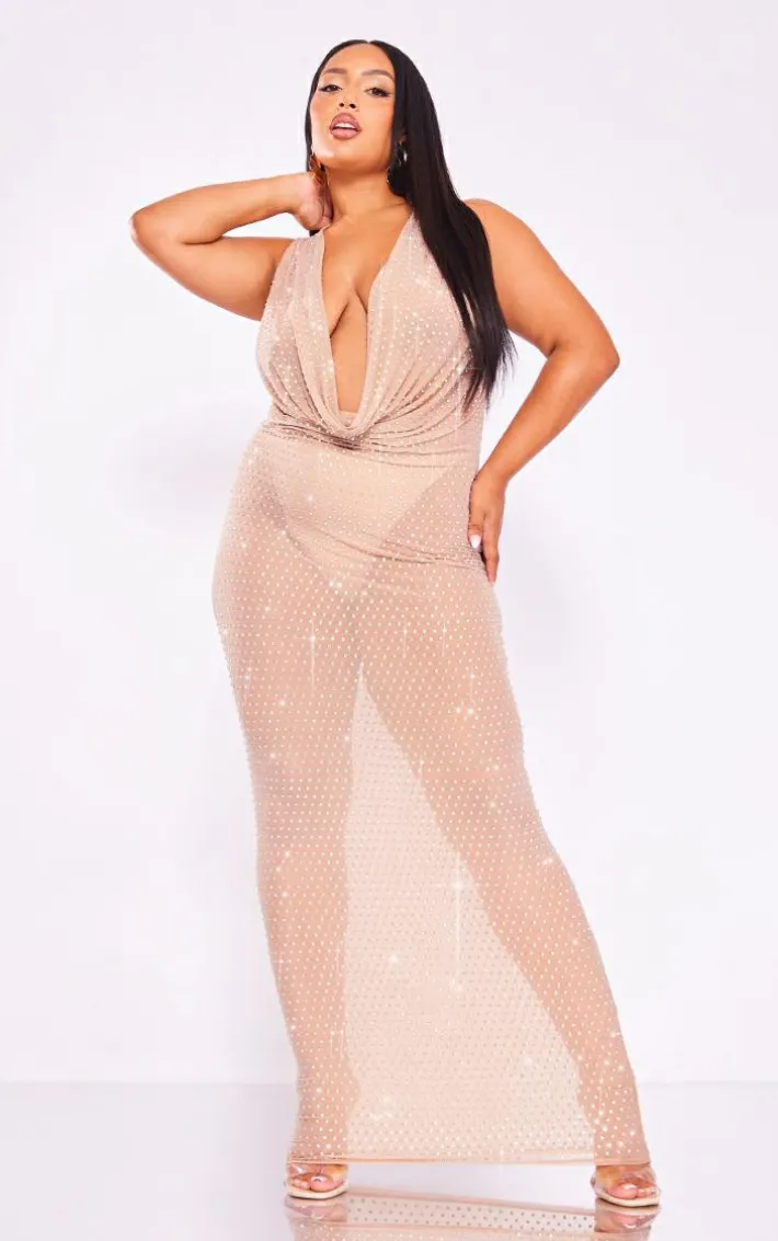 Look all kinds of glam in this premium plus nude embellished mesh maxi dress. Brought to you in a nude mesh material that is sure to amp up your neutral collection. With an embellished design and a maxi length, this premium plus dress will have you making statements wherever you go. Team with some clear heels and a pair of gold hoops to nail major trends.