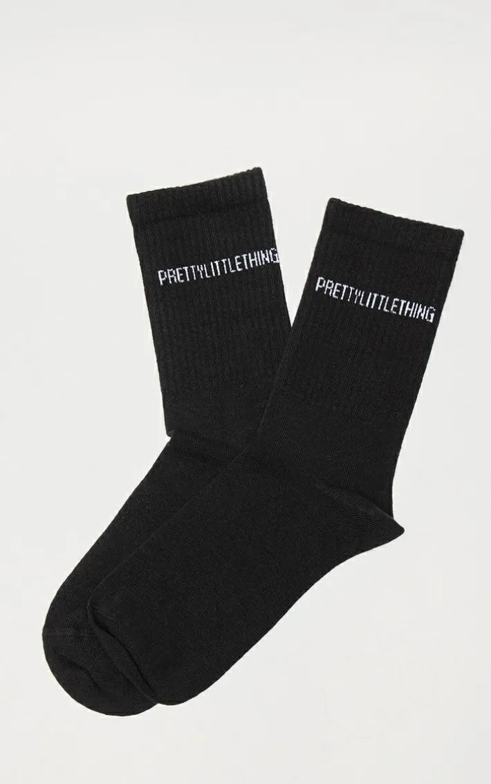 We are obsessing over these cute socks to add to your outfit of the day. Featuring a soft black material with PrettyLittleThing logo detailing, team this with chunky combat boots or box-fresh kicks to level up your footwear game.