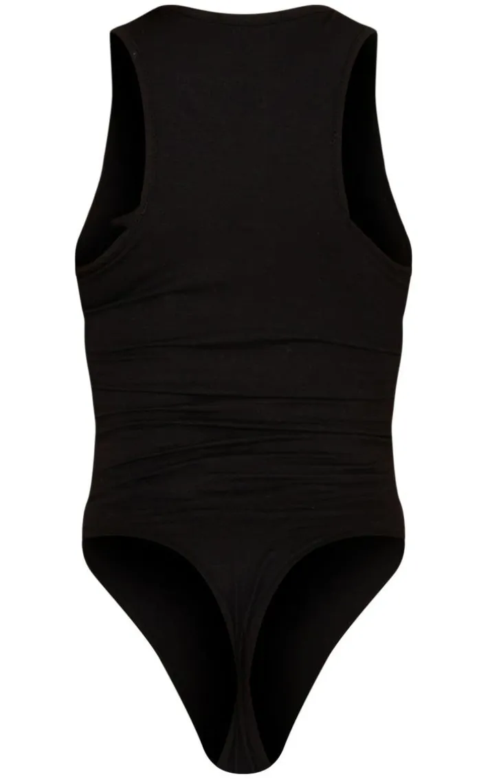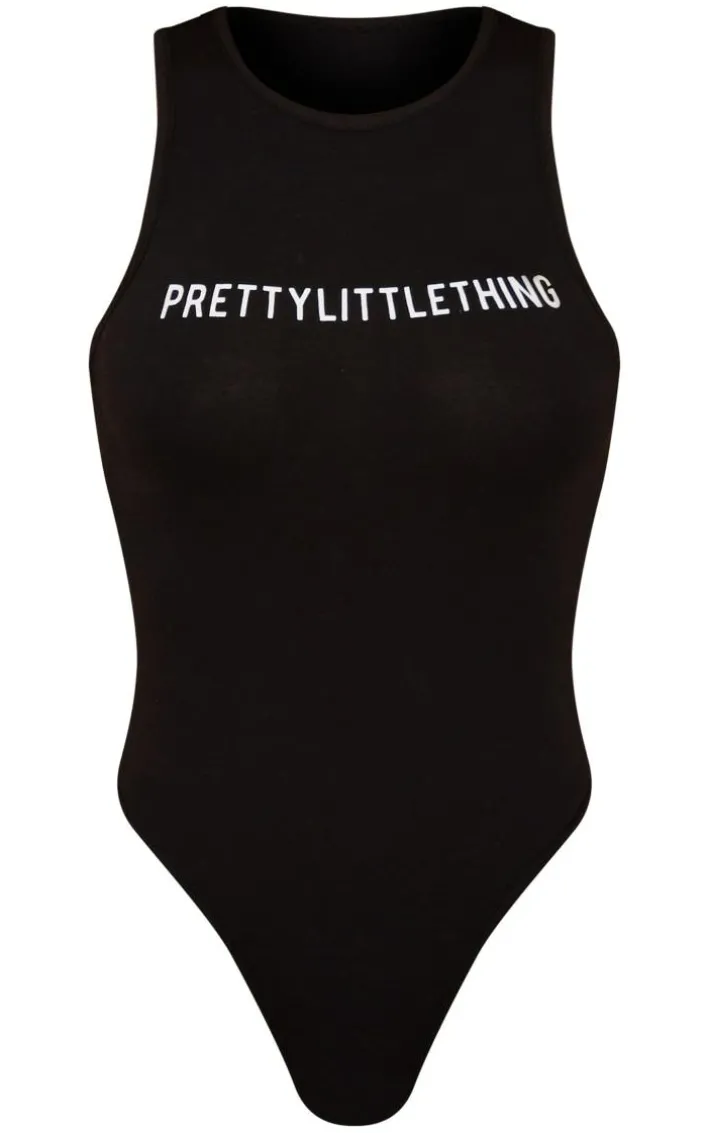 Take your off-duty styling to the next level with this PrettyLittleThing black branded racer bodysuit. This bodysuit is brought to you in a black hue with a branded design and a racer neckline, how could you say no? This bodysuit is calling your name. Just add the matching shorts, box-fresh kicks and accessories to complete the look.
