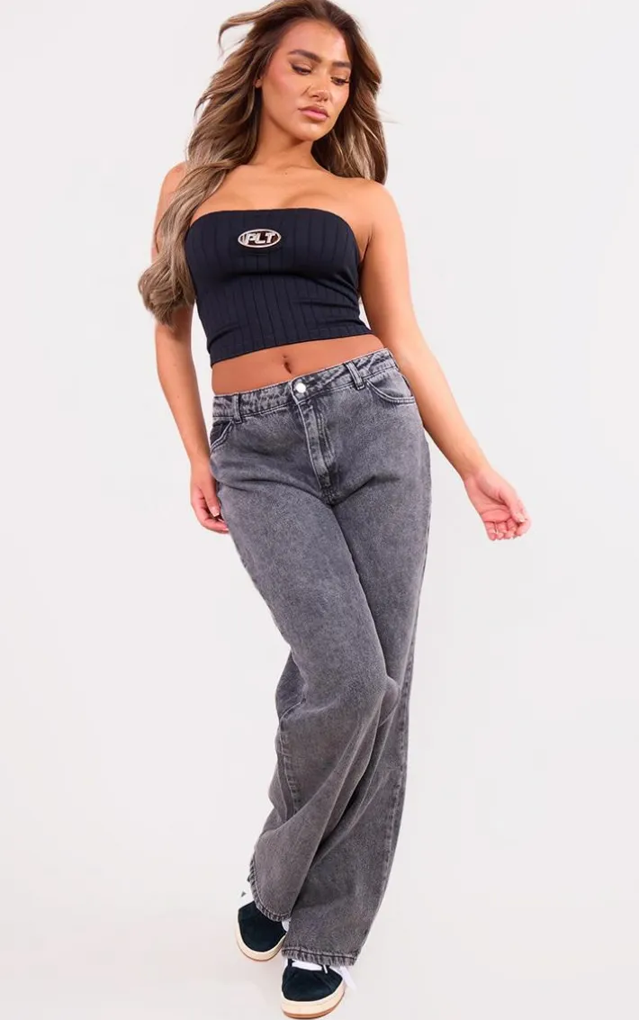 Make everyday styling simple with this must-have PrettyLittleThing black metal badge snatched rib bandeau top, it is sure to solve all your what-to-wear dilemmas. This top is made from a black snatched rib material with a ‘PrettyLittleThing’ metal badge detail and a bandeau style, how could you say no? Team with cargo bottoms, chunky sneakers and a faux leather jacket for a cool, off-duty vibe.