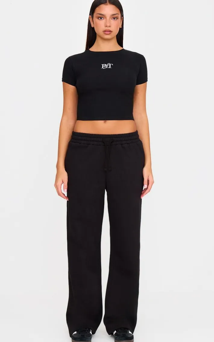 Upgrade your off-duty wardrobe with this PrettyLittleTghing black ribbed short sleeve t-shirt. Made from a black ribbed material with a ‘PrettyLittleThing’ design and short sleeves, what’s not to love? Team this black t-shirt with comfy bottoms and sneakers for a look that is perfect for those chilled days.