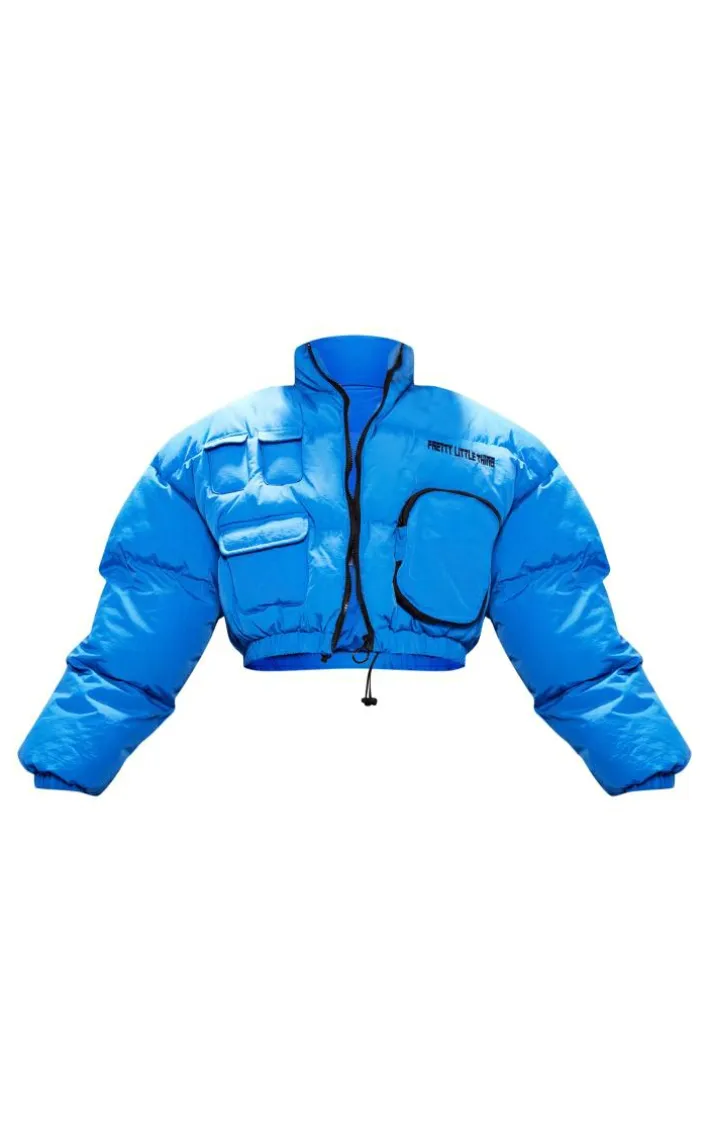 Your outfit of the day wouldn’t be complete without this bold jacket. Featuring a blue material with utility-style pocked and a cropped length. Team with wide leg bottoms and fresh kicks for a look that is totally on trend.