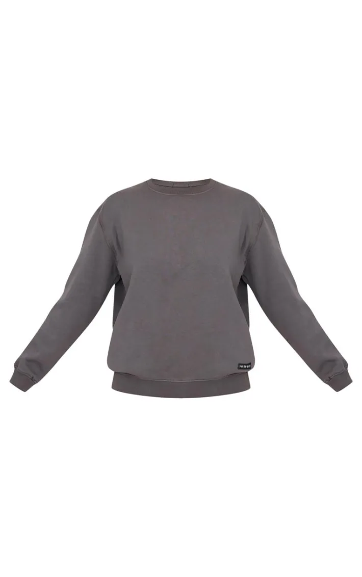 Give your off-duty look with this must-have sweatshirt. Featuring a charcoal material with a PrettyLittleThing badge and a loose fit. We love this teamed with the matching bottoms and fresh kicks to complete the look.
