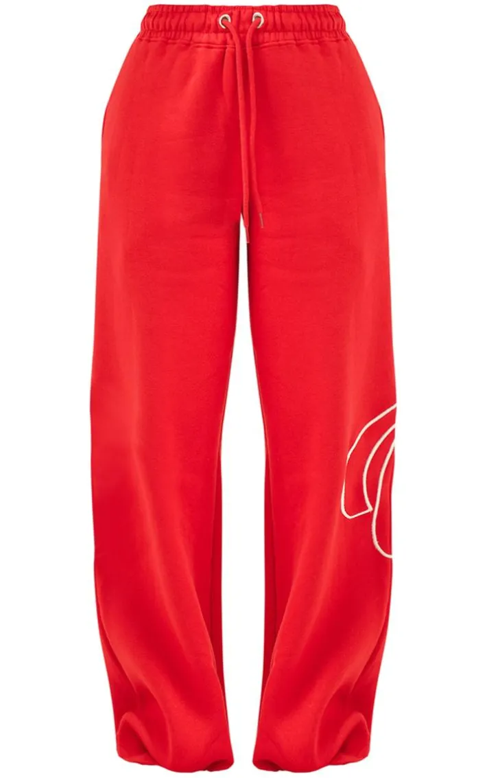 Add some of this season’s must-have hue to your wardrobe with these PrettyLittleThing cherry red logo embroidered straight leg sweatpants, they’re perfect for your next off-duty day. With a cherry red material, a ‘PrettyLittleThing’ embroidered design and a straight leg fit, you’ll be adding these sweatpants straight to your basket. Team it with the matching top, chunky sneakers and a shoulder bag for a combo we’re crushing on.