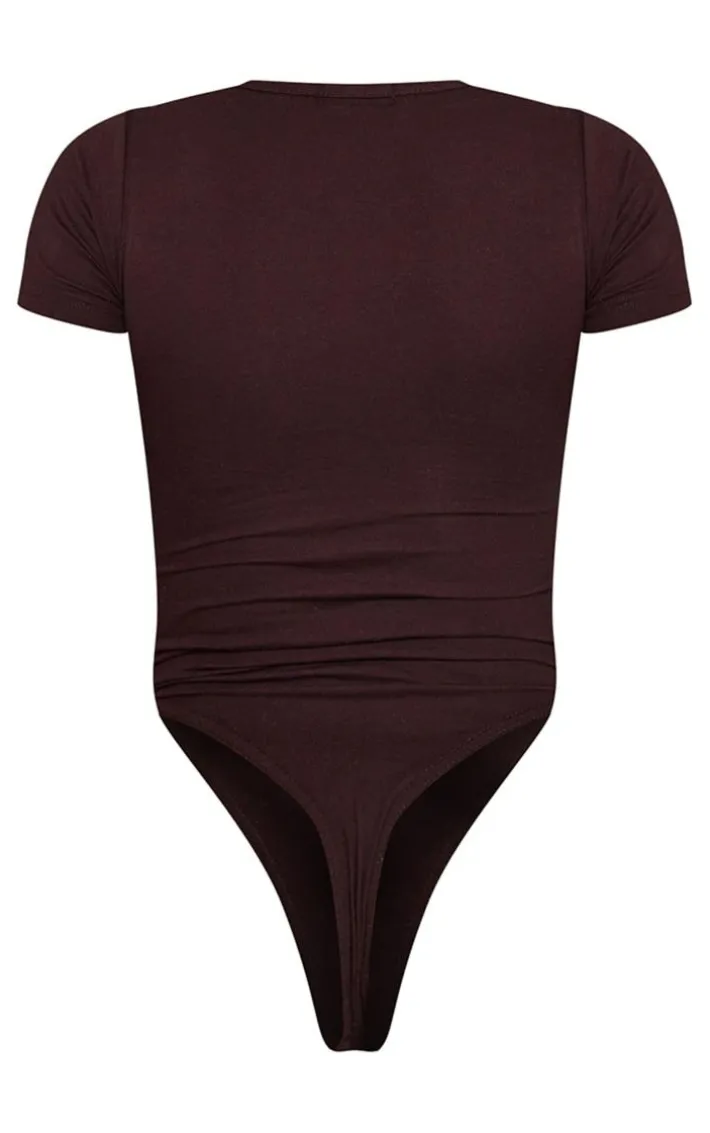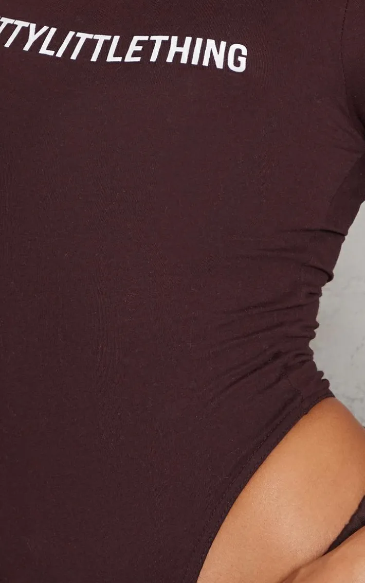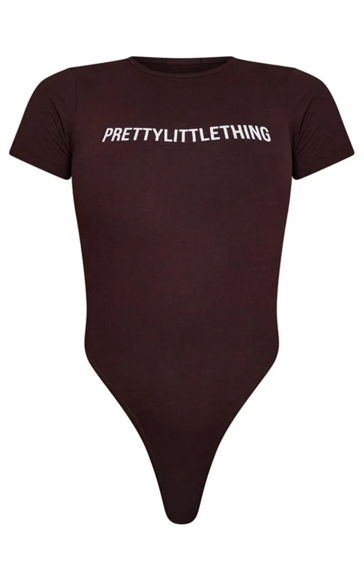Take your off-duty wardrobe to the next level with this PrettyLittleThing chocolate brown logo short sleeves bodysuit. Featuring a chocolate brown hue material with a ‘PrettyLittleThing’ print and short sleeves. Team with matching hue bottoms and fresh kicks to steal the look.