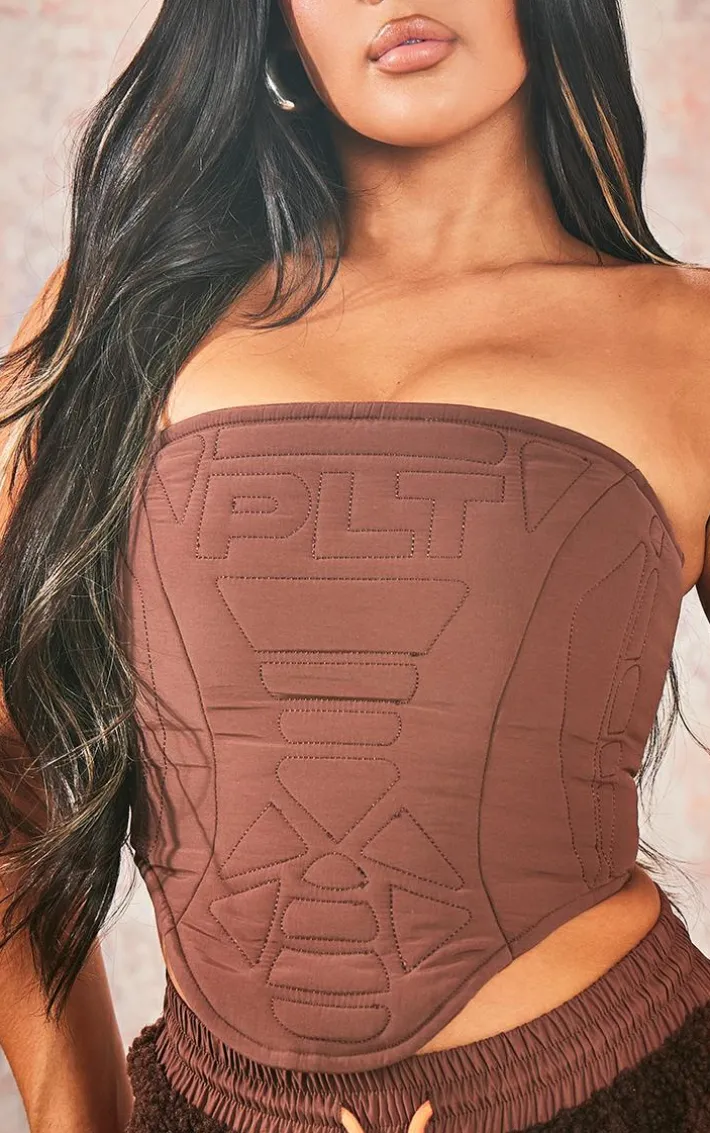 Take your new season wardrobe that extra mile with this PrettyLittleThing chocolate brown nylon padded corset, it’s a definite yes from us whatever your plans. Brought to you in a chocolate brown nylon material with a padded design and a figure-worshipping fit, this corset will have you at the center of attention. Team it with some wide leg pants, clear slip-on heels and bold accessories for a look everyone will want.