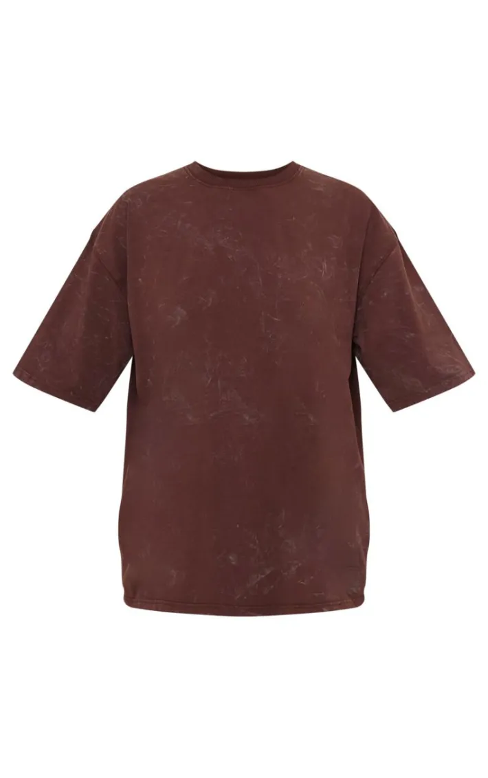 Elevate your basics game with this PrettyLittleThing chocolate print washed oversized T shirt. Brought to you in a chocolate hue material with a print detail and washed design, this oversized T shirt is a must have for all those off duty days. Team with leggings, fresh kicks and simple accessories for a cosy finish.