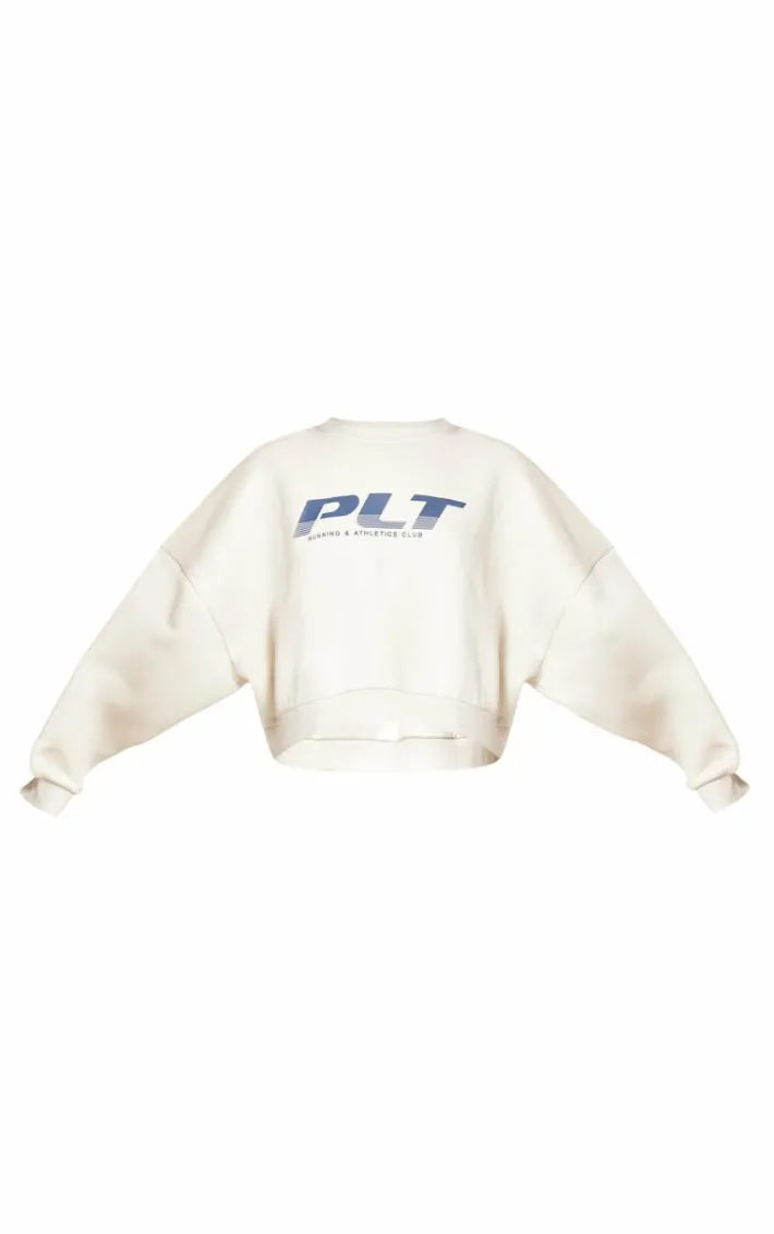 Elevate your athleisure wardrobe with this PrettyLittleThing cream athletics club embossed oversized boxy Sweatshirt. Brought to you in a versatile cream hue, with a ‘PLT Athletics Club’ design and an oversized boxy Sweatshirt fit, your weekends have never looked cosier. Pair with a pair of shorts, chunky sneakers and socks for a laid back combo.