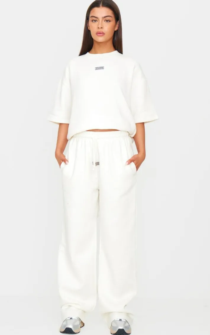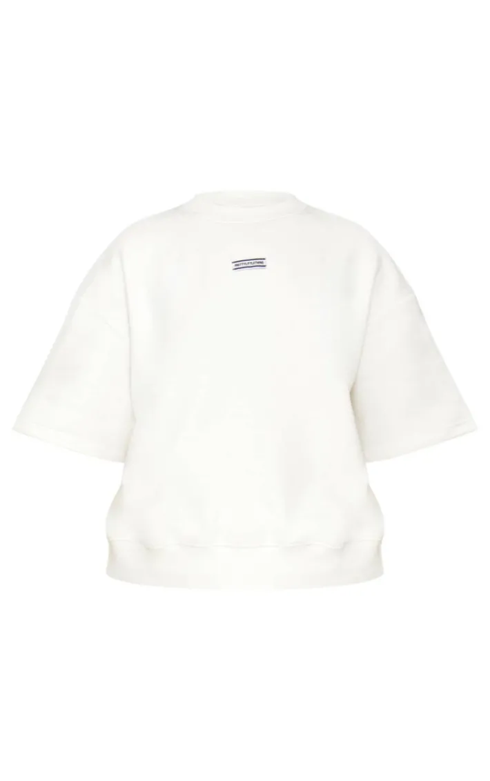 We’re seriously obsessed with this PrettyLittleThing cream badge detail oversized short sleeve Sweatshirt for your new season wardrobe. Brought to you in a cream hue material with a ‘PrettyLittleThing’ badge detail and an oversized fit, what more could you ask for? This Sweatshirt also features short sleeves which is sure to add that extra edge to your look. Team with the matching sweatpants, sneakers and everyday accessories for a look that won’t go unnoticed.